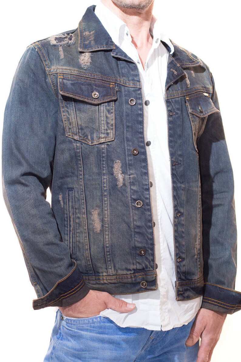 Fashionable Brands Jeans Jacket Denimology Men Ripped Look Etsy