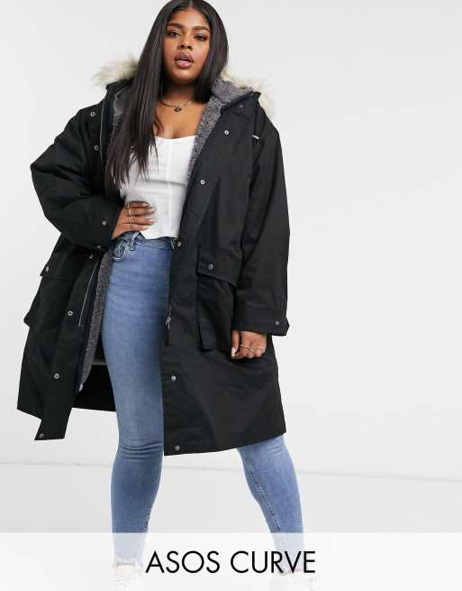 Asos Design Curve Faux Fur Lined Parka In Black Asos