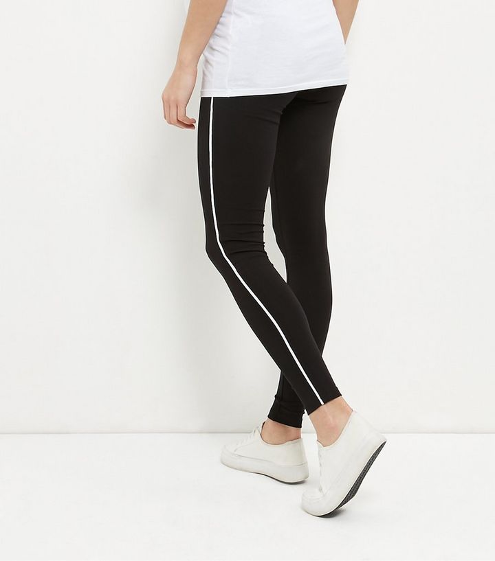Schwangerschaftsmode Schwarze Gestreifte Leggings Mit Uberbauchbund New Look