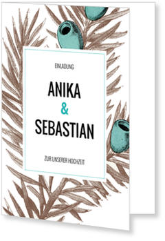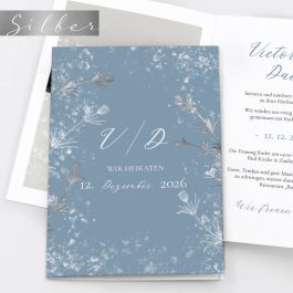 Dieses edle Kartendesign bekommt ihr bei Kartenmacherei. Unsere wundervolle Klappkarte ist in Weiß mit eisblauen Akzenten gehalten Dabei wirkt die Einladung keinesfalls kalt, denn dank der zarten Blätter und Zweige auf der Vorderseite bekommt die Karte einen warmen und winterlichen Charakter. Was sollte auf die Einladungskarten zur Hochzeit stehen?.