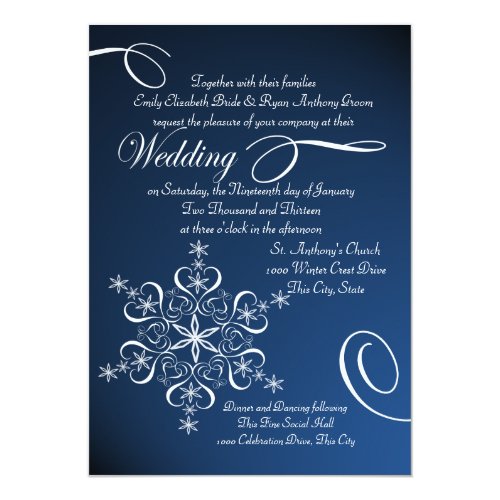 Schneeflocke Blaue Eleganz Winter Hochzeit Einladung Meine Einladungskarten De