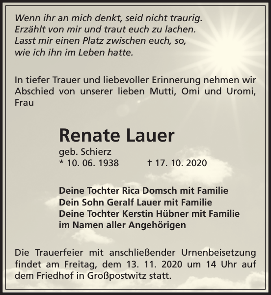 Renate Lauer Traueranzeige Sachsische Zeitung