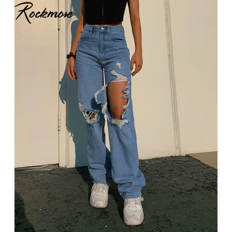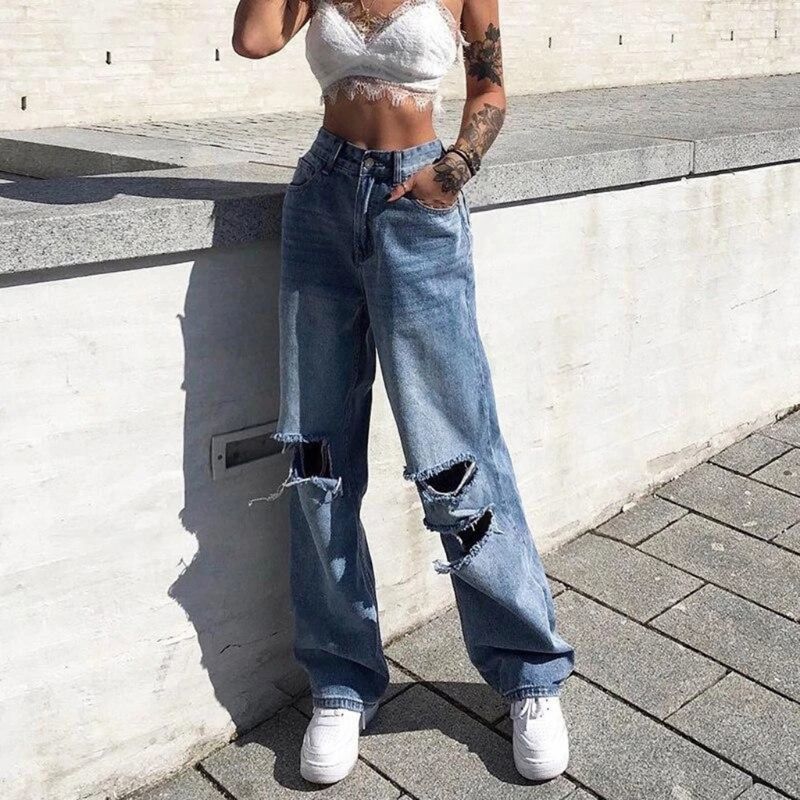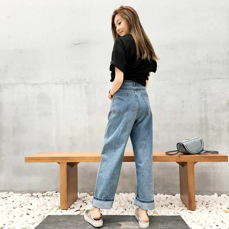 Mode Frauen Hohe Taille Baggy Jeans Gerade Breite Bein Bf Stil Lose Fit Denim Hosen Ganzkorperansicht Distressed Hip Hop Cowboy Denim Pants High Waistwomen High Aliexpress