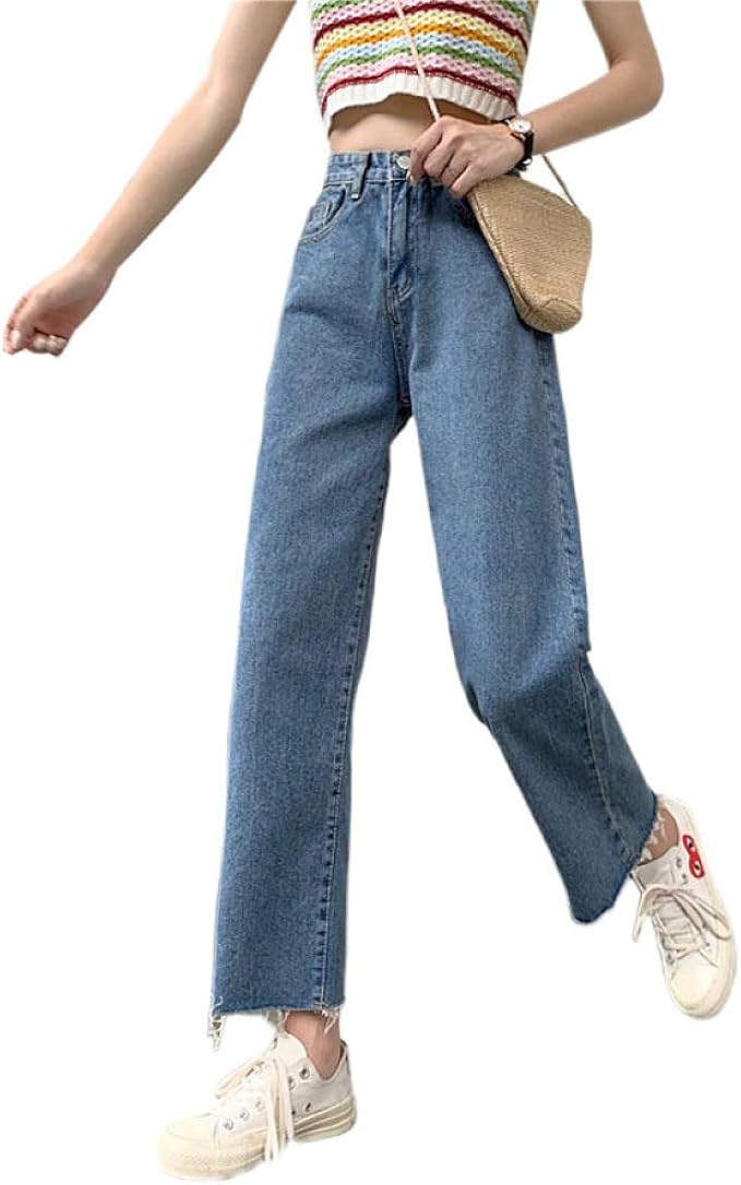Generic Jeans Damen Casual High Waist Dunne Dunne Breite Beinhose Student Retro Nine Jeans Amazon De Bekleidung
