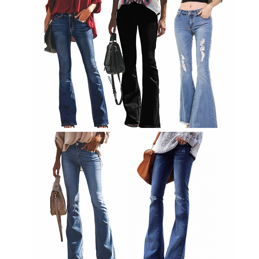 Mode Denim Flare Hosen Frauen Retro Ripped Stretch Jeans Breite Bein Hosen Damen Casual Hohe Warten Glocke Boden Flare Hosen Jeans Aliexpress