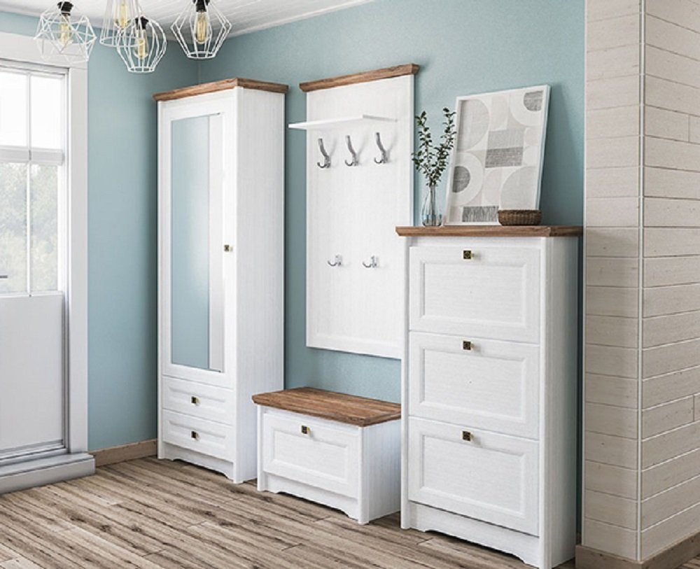 Landhaus Garderoben Set Mit Kleiderschrank Julich 36 In Pinie Weiss Mit