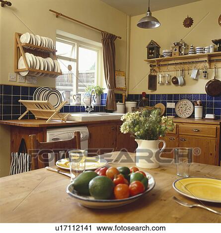 Schussel Gemusen Auf Holzern Kuchentisch In Traditionelle Creme Kueche Malen In Farrow Kugel Farbe Stock Bild U Fotosearch