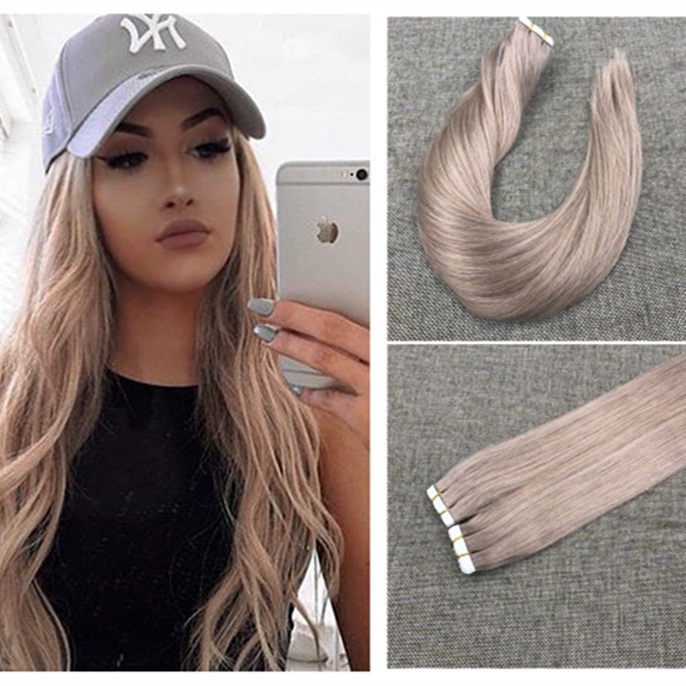 Ugeat 60cm Tape In Hair Extensions Ash Blonde Colour Seamless Thick End Pu Tape Hair Extensions 100gram Per Pack Remy Human Hair Glue In Hair Extensions Salon Quality By Ugeat Shop