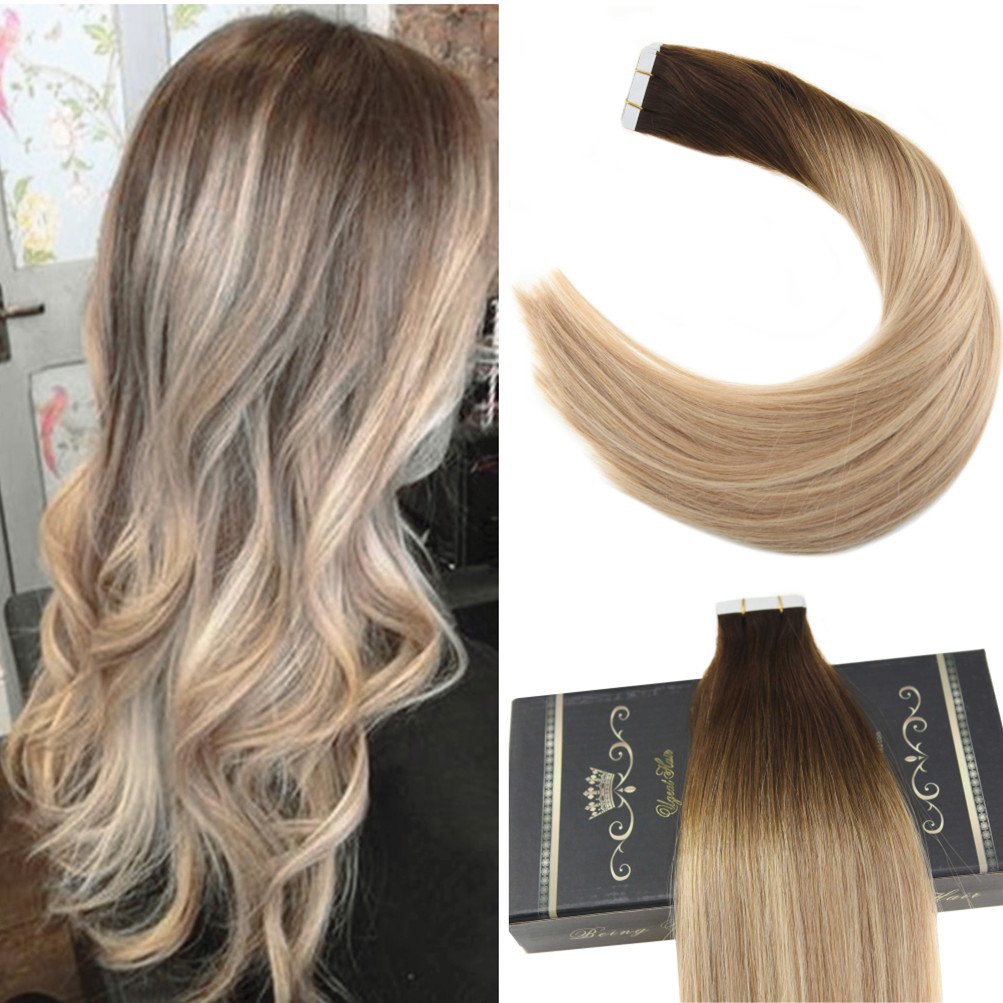 Tape Extensions Balayage Brown With Blonde For Thickness 6 60 Ugeathair