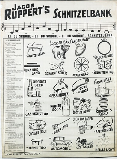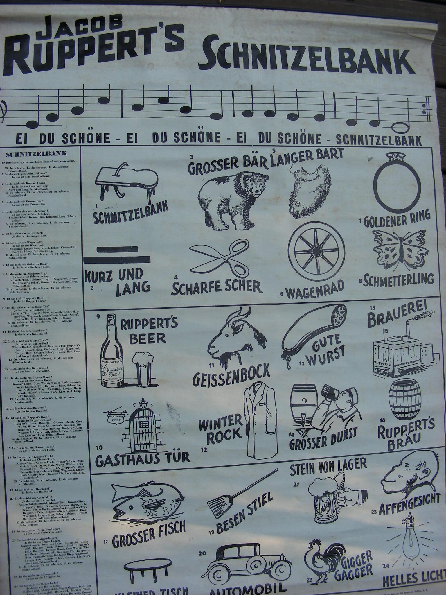 Jacob Ruppert S Schnitzelbank Schnitzelbank Grosser Bar Langer Bart Goldenr Ring Kurz Und Lang Scharfe Scher Wagenrad Schmetterling Rupperts Beer Geissenbock Gute Wvrst Braverei Gasthaus Tvr Winter Rock Grosser Durst Ruppert S Vrau Grosser