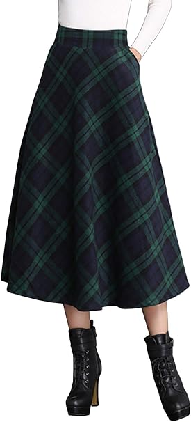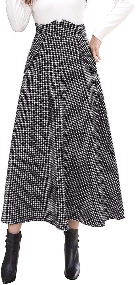 Damen Winterrock Elegant Wollrock Lang Rock Warm Plaid Maxirock Wolle Elastische Taille Hohe Taille Rocke Amazon De Bekleidung