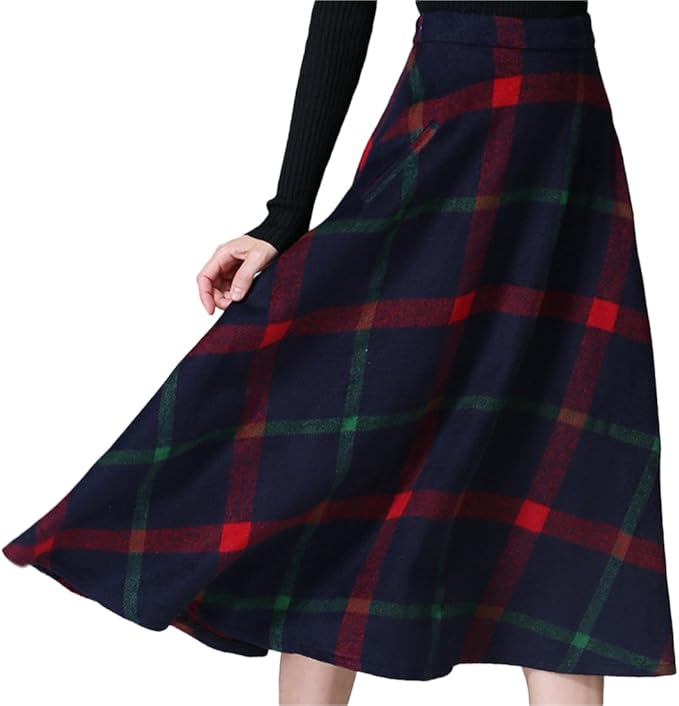 Ashanlan Damen Wollrock Winterrock Kariert Rock A Linie Lang Faltenrock Glockenrock Tellerrock Mit Hohe Taille Winterrock Tellerrock Winter Rock