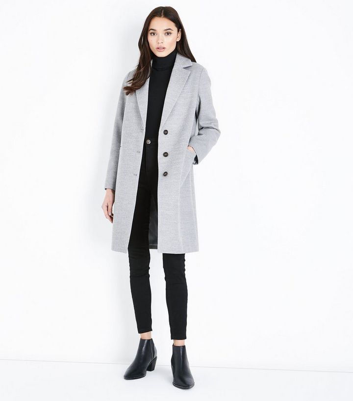 Hellgrauer Mantel Mit Knopfleiste Vorne New Look