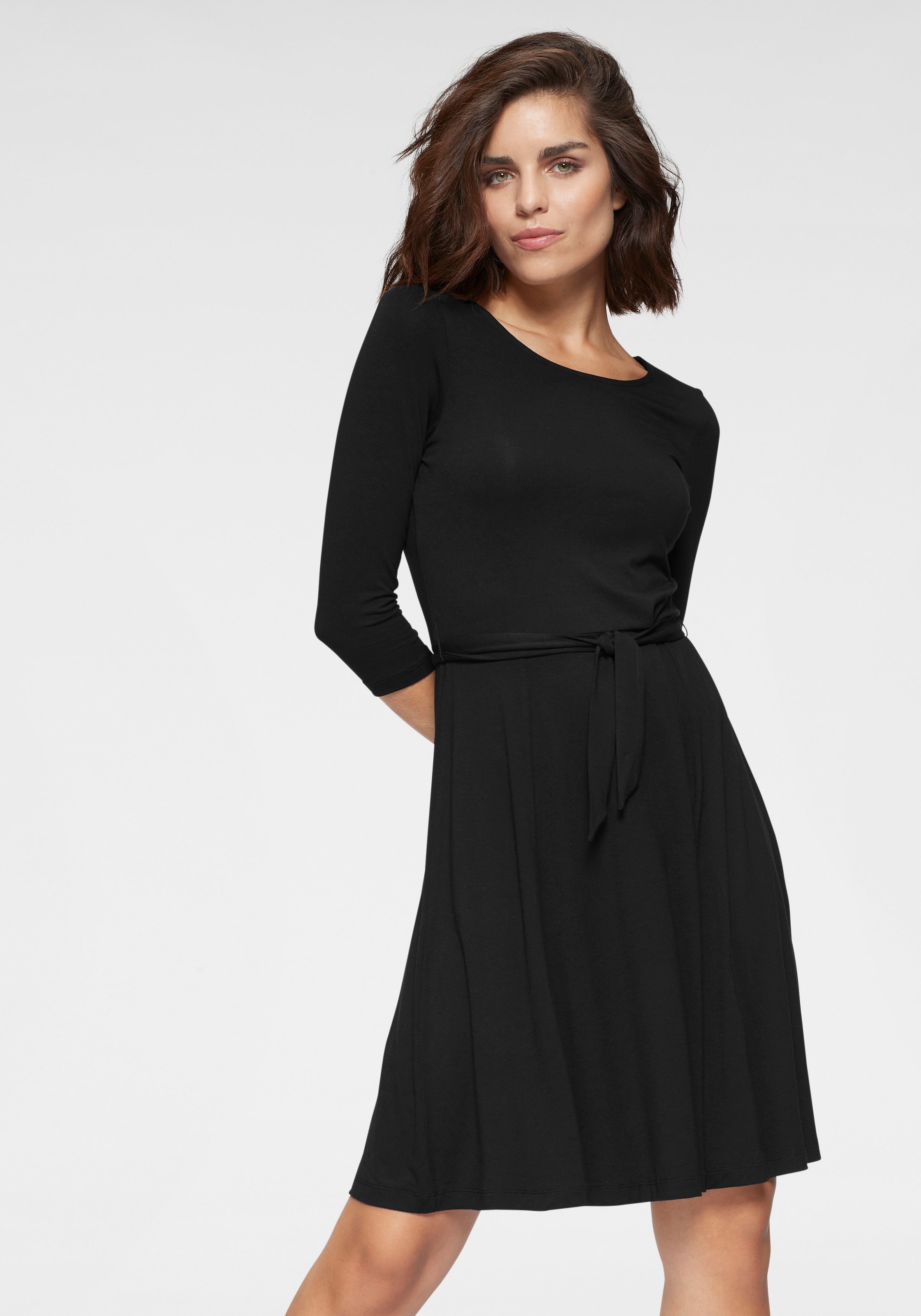 Efixelle Jersey Kleid Mit 3 4 Arm Schwarz Kleider Kleid Und Strickjacke Damen