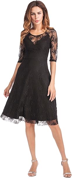 Modfine Damen Elegant Cocktailkleid Spitzen Abendkleid 3 4 Arm Festliche A Line Kleider Knielang Gr S Xxl Amazon De Bekleidung