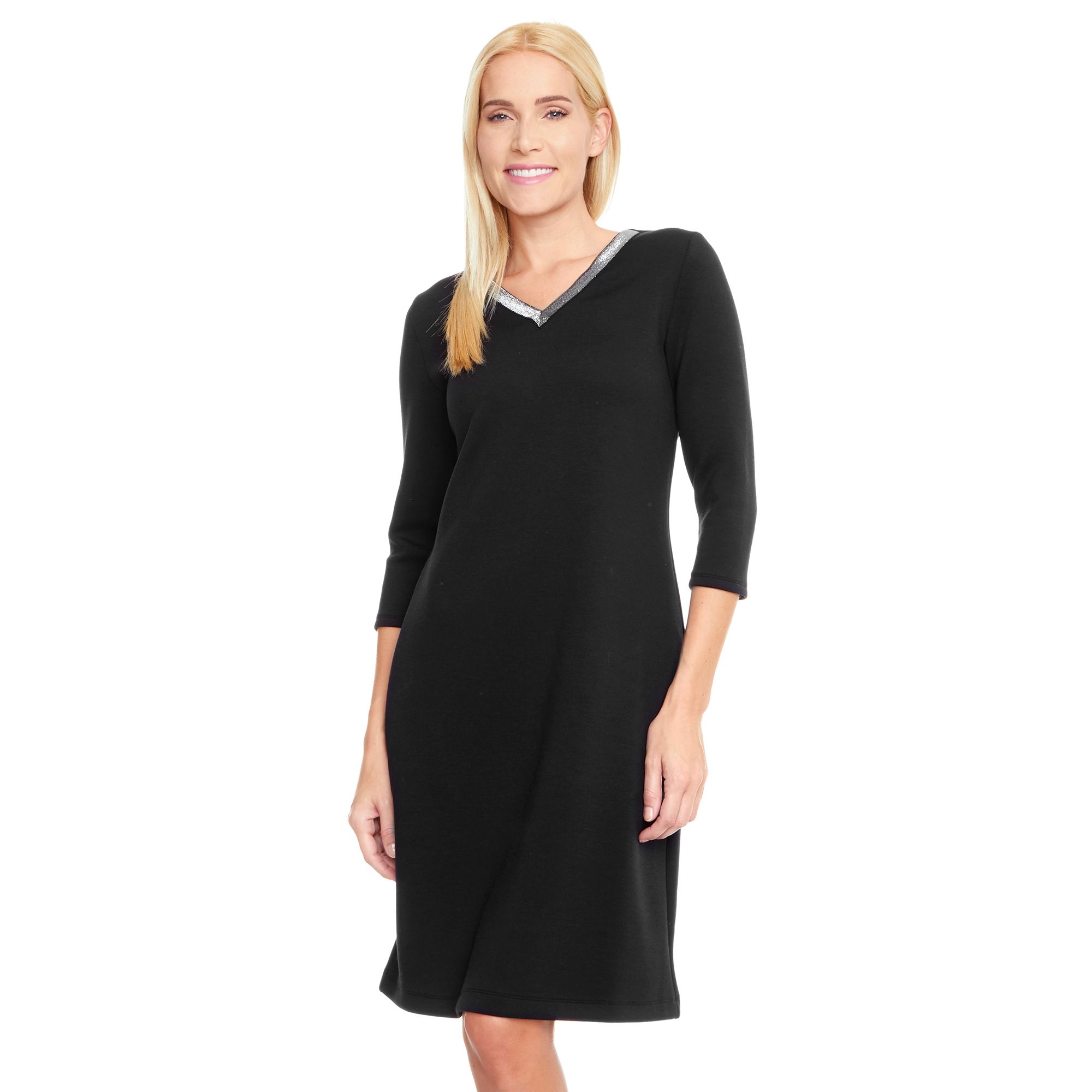 Today S Woman Kleid 3 4 Arm V Ausschnitt Glitzerstreifen Scubaware Qvc De