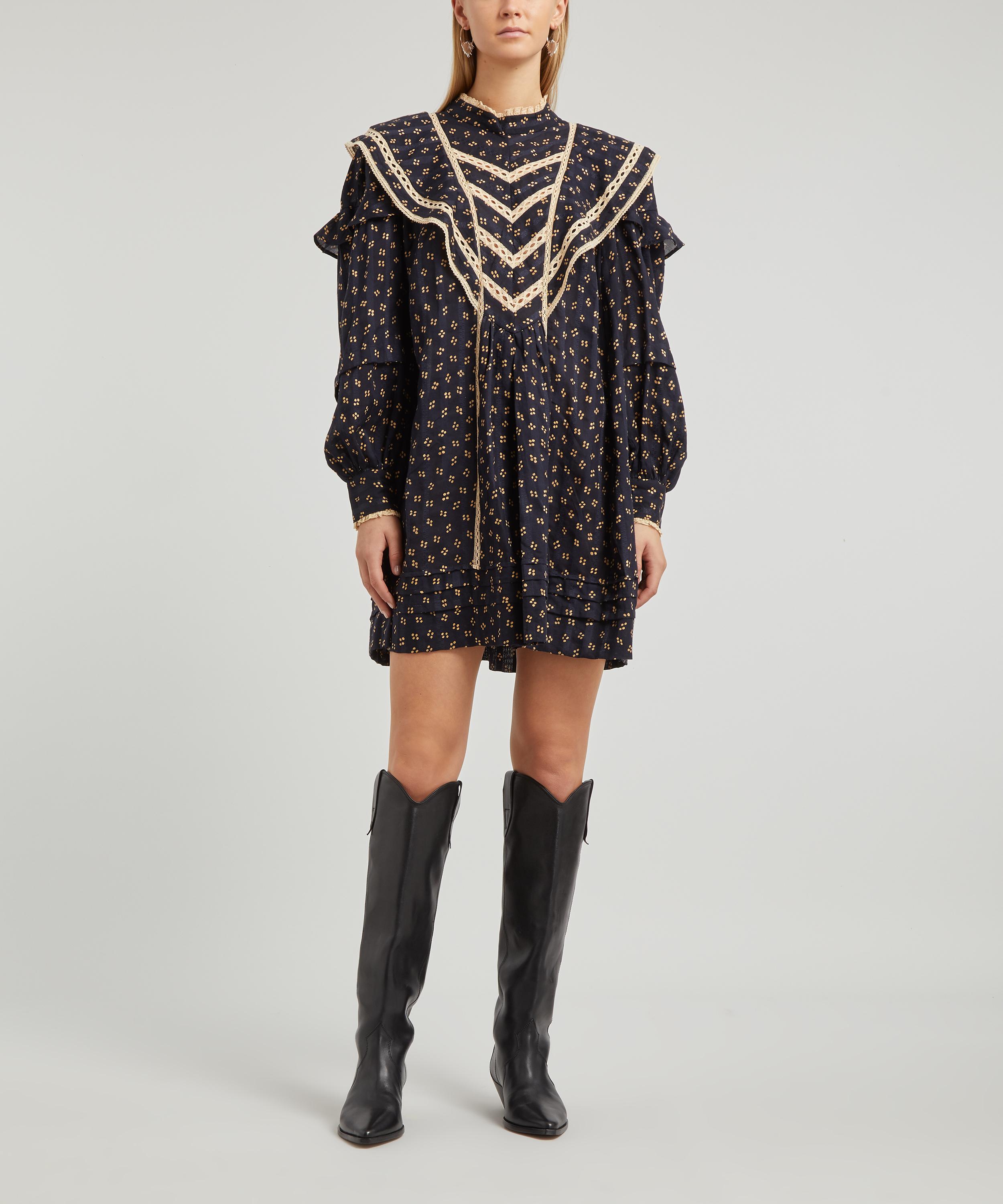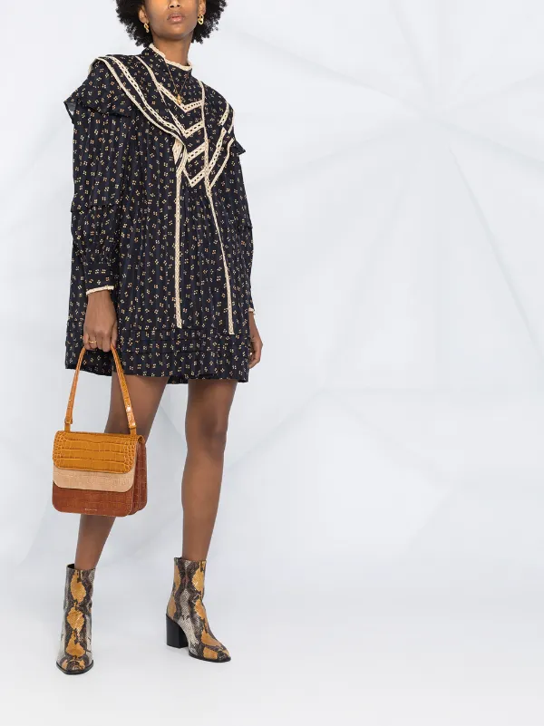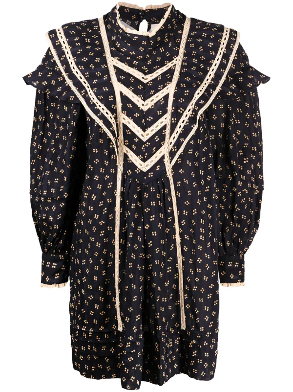 Isabel Marant Étoile Rebel lacetrimmed floraldot cotton mini dress $695 Now $347 Save50% Product Code Contact us US MyStylist Tel (USA Toll Free) Tel 44 (0) 7022 08 Or email mystylist@matchesfashioncom Required field * Contact me by. Self 57% linen 30% viscose 11% cotton 2% elastanLining 100% cotton Made in Slovakia Dry clean only Pleated ruffled fabric trim Hidden back zip closure Asymmetrical hem. A cute little mini dress, decorated with floral print all over A highneckline leads into long sleeves with ruffled detailing The mini silhouette can be perfectly paired with some ankle booties for a trendy look The dress gives off some boho vibes and we love it!.