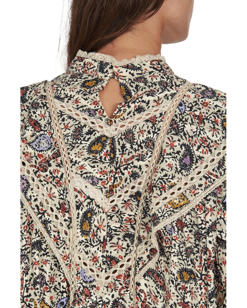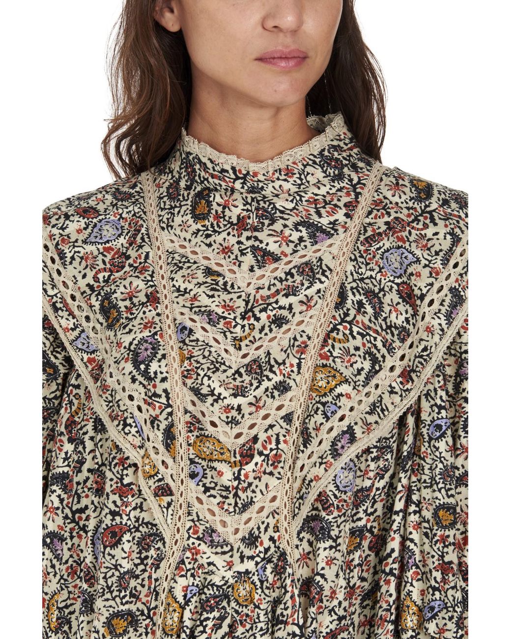 Description This multicoloured Isabel Marant Étoile Rebel paisley cotton mini dress is shaped with a high neck, long sleeves, a nape button fastening and embroidered lace detailing You'll feel a bit like a Rebel in your Isabel Marant Étoile piece, as you won't be dressing like everyone else REF / RO1751A049E. Isabel Marant Étoile's striped 'Olena' shirt is made from semisheer cottonblend voile that's woven with a touch of silk for softness It has a ruffled stand collar and oversized fit that's emphasized by dropped shoulders Wear it tucked into highrise jeans with a blazer for the officeShown here with Isabel Marant Étoile Jeans id, Chloé Shoulder bag id, Isabel Marant. © 0421 LUISA VIA ROMA SPA VAT number IT Via Benedetto Varchi 61, Firenze.