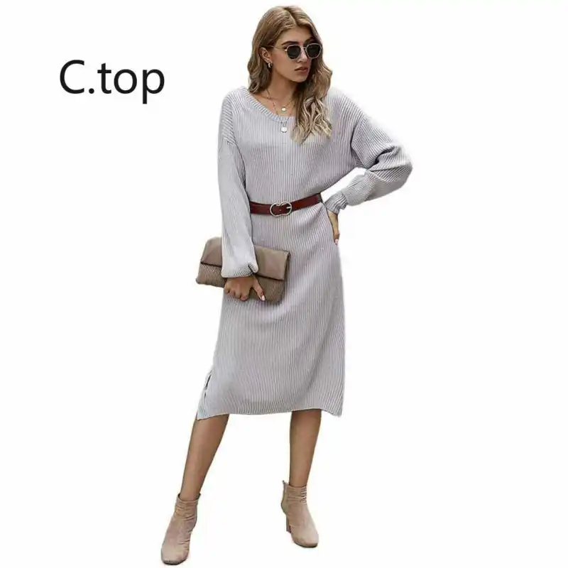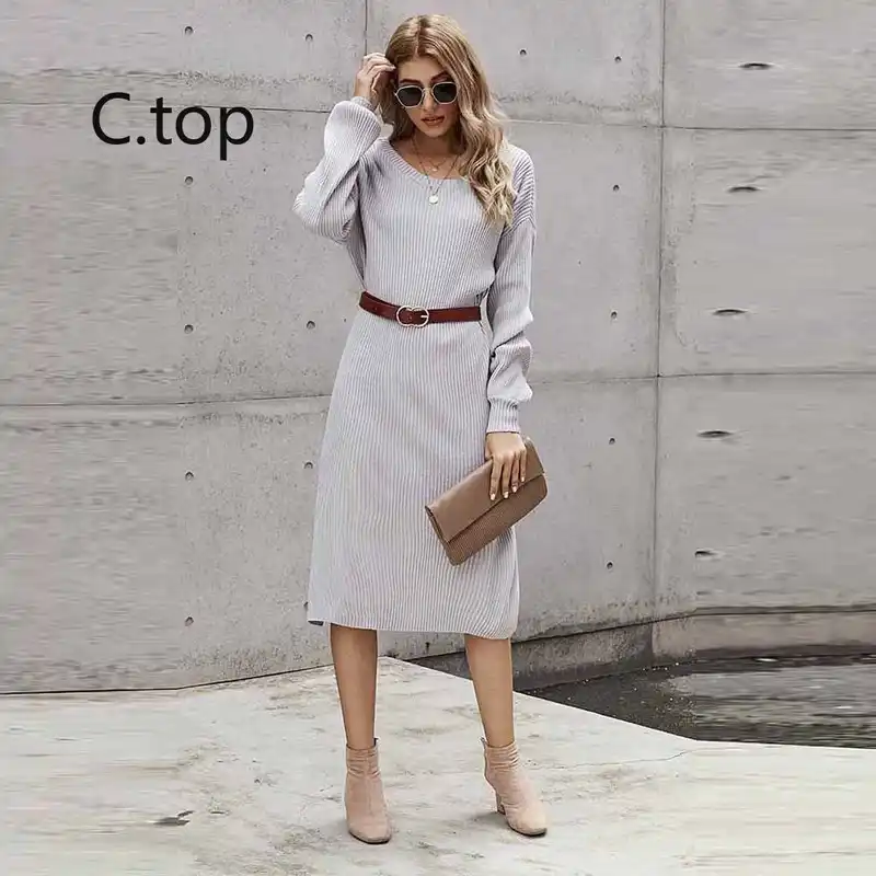 Herbst Winter Kleidung Slash O Hals Gestrickte Pullover Lange Kleid Frauen Vintage Casual Kleid Damen Elegante Party Kleid Femme Kleider Aliexpress