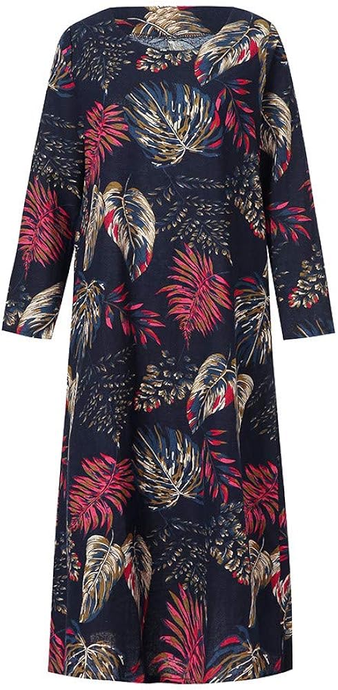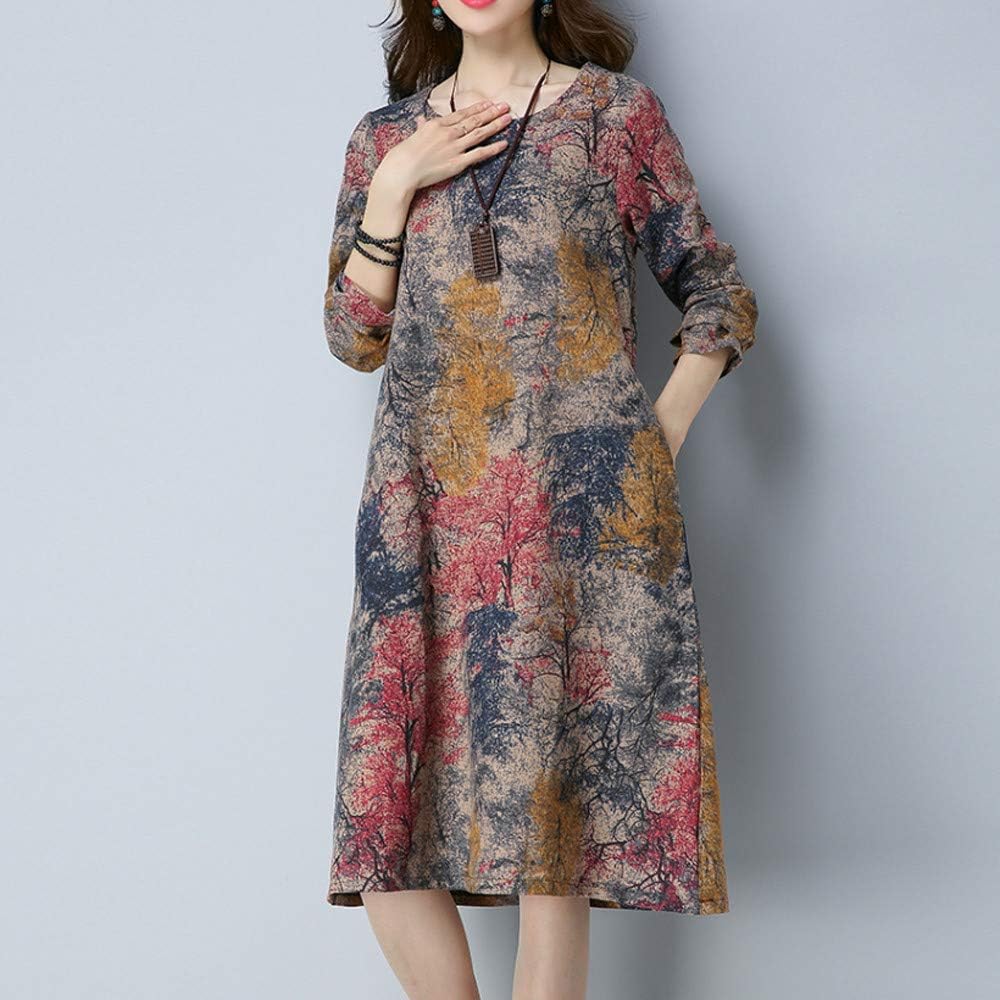 Npradla Winter Kleider Damen Herbst Baumwolle Und Leinen Lassige O Ausschnitt Blumen Drucked Amazon De Bekleidung