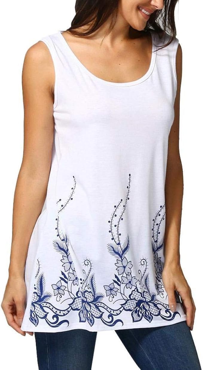 Tank Top Damen Lang Elegante Sommer Sleeveless Rundhals Gedruckt Fashion Weisses Perfect Oberteile Loose Sport Off Shoulder Casual Blusentop T Shirt Style Amazon De Bekleidung
