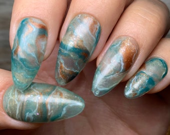 Green Marble Nails Etsy