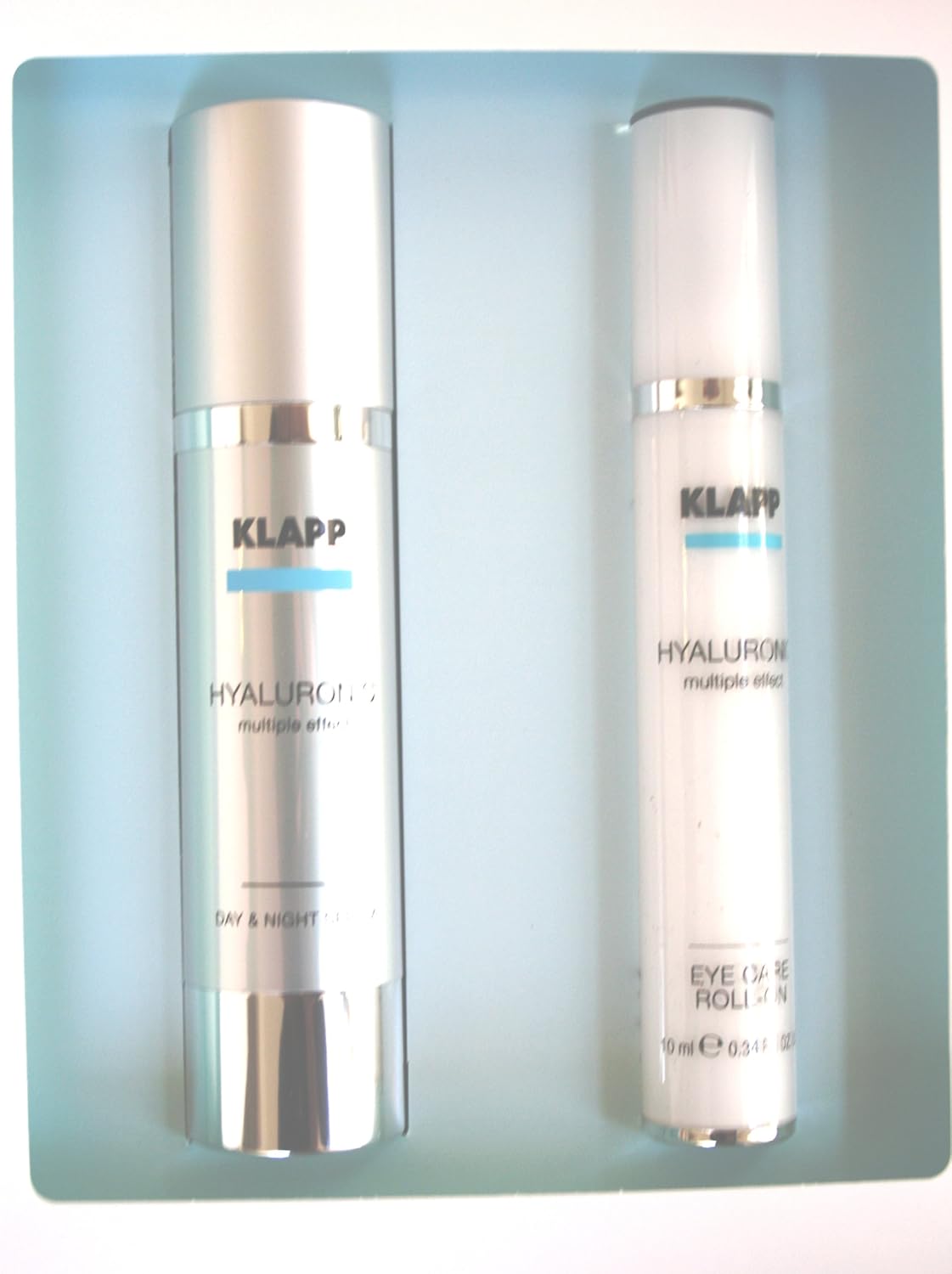 Das KLAPP HYALURONIC Multiple Effect Power Set beinhaltet 3 x KLAPP HYALURONIC Power Concentrate, à 2 ml;. KLAPP HYALURONIC Cream 50ml KLAPP HYALURONIC Serum 50ml SET 48 Days Shipping on Business Days!!!. HYALURONIC CARE ROLLON 10ml & DAY & NIGHT SERUM 50ml $ HYALURONIC EYE CARE ROLLON 10ml Exclusive special skin care for the thin and sensitive eye area An innovative ingredient from cellulose derivatives, biopolymers and microalgae give the eye contour new elasticity and resilience The hyaluronic acid supplies the skin with optimum moisture whilst wrinkles are reduced.