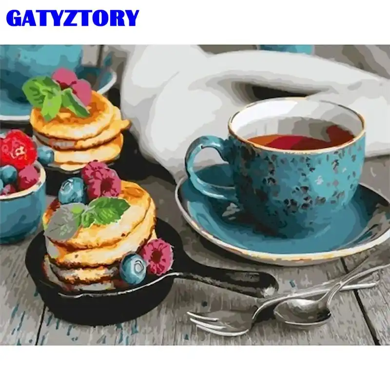 Gatyztory Gerahmte Malen Nach Zahlen Fur Erwachsene Handgemachte Farbe Kuchen Kaffee Bild Modern Home Schlafzimmer Dekor 60x75cm Gerahmte Malen Nach Zahlen Aliexpress