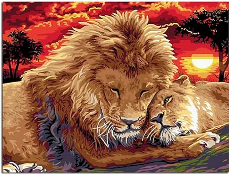 Lamamag Malen Nach Zahlen Konig Der Lowen Und Babys Diy Malen Nach Zahlen Bild Nach Zahlen Digitales Olgemalde Wandkunst Dekor Bild Handgefertigt Amazon De Kuche Haushalt