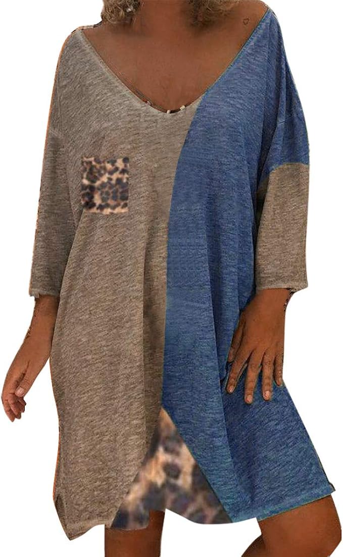 Lopily Tunika Damen Grosse Grossen Leopard Druckkleid Hippie Sommerkleid Fur Mollige V Ausschnitt Strandkleid Umstandkleid Lose Atmungsaktives Swing Kleid Frauen Bis 5xl Amazon De Bekleidung