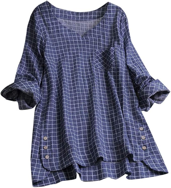 Lopily Leinen Oberteile Damen Grosse Grossen Karierte Druck Shirts V Auschnitt Tshirts Langarm Tunika Herbst Mit Taschen Ubergrosse Oberteile Freizeit Fur Mollige Gr 50 Long Shirts Damen Herbst Amazon De Bekleidung