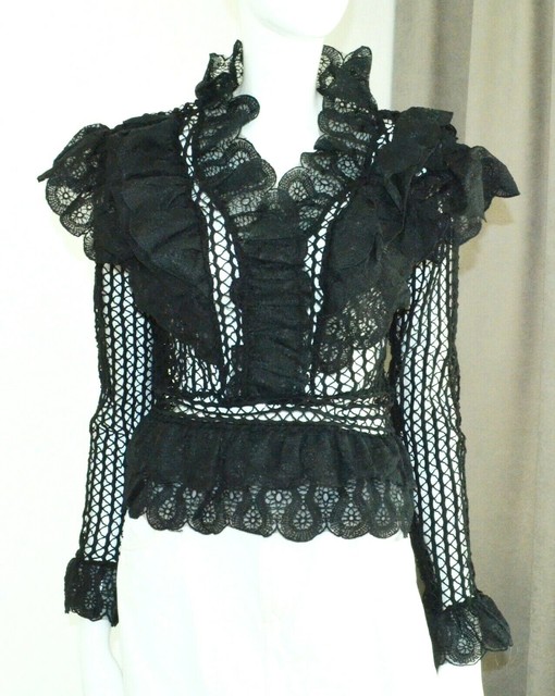 Gr M L Shwarzes Weisses Elegantes Oberteil Mit Ruschen Langarm Spitzenoberteil Eur 14 99 Picclick De