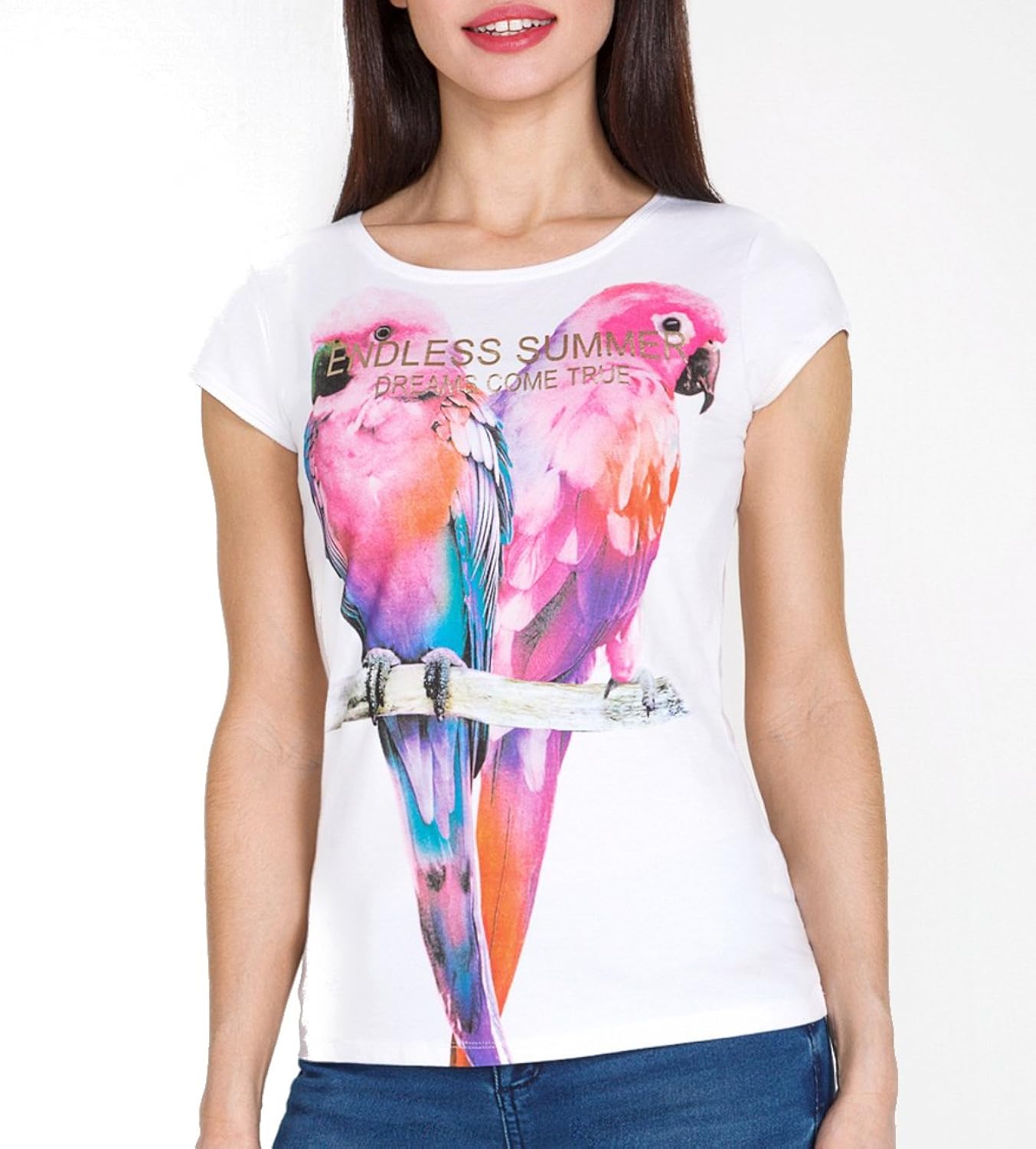 Bestia Weisses Top Fur Damen Kurzarm T Shirt Elegantes Damenoberteil Modell Adela Weiss Gemustert Bedruckt Oberteil Top Sommer Edel On Sale Fiestaso Ca