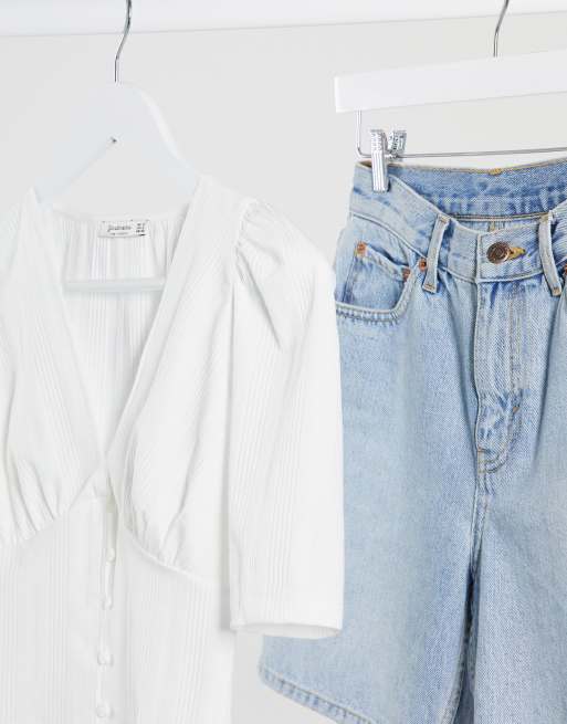 Stradivarius Weisses Oberteil Mit V Ausschnitt Und Knopfdetails Asos