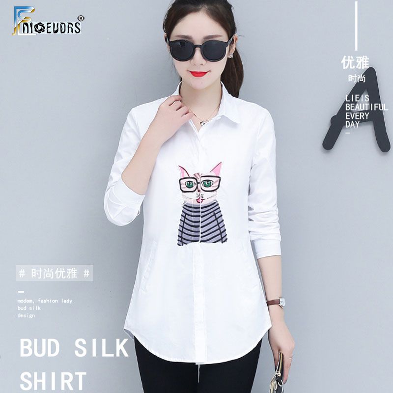 Grosshandel Weisser Knopf Hemden Blusen Damenmode Langarm Elegant Buro Dame Arbeit Weisses Oberteil Katze Gedruckt Blumentunika Oberteil Bluse Von Sikaku 15 Auf De Dhgate Com Dhgate