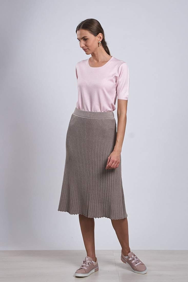Damen Pulli Kurzarm Gestrickt Mit Wolle Und Garn Von Schoeller Stahl