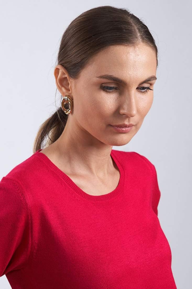 Kurzarm Pullover Aus Feinstrick Rot Taifuntaifun Products Tattoofeminina Balikci Yaka Kadin Olmak Elbise
