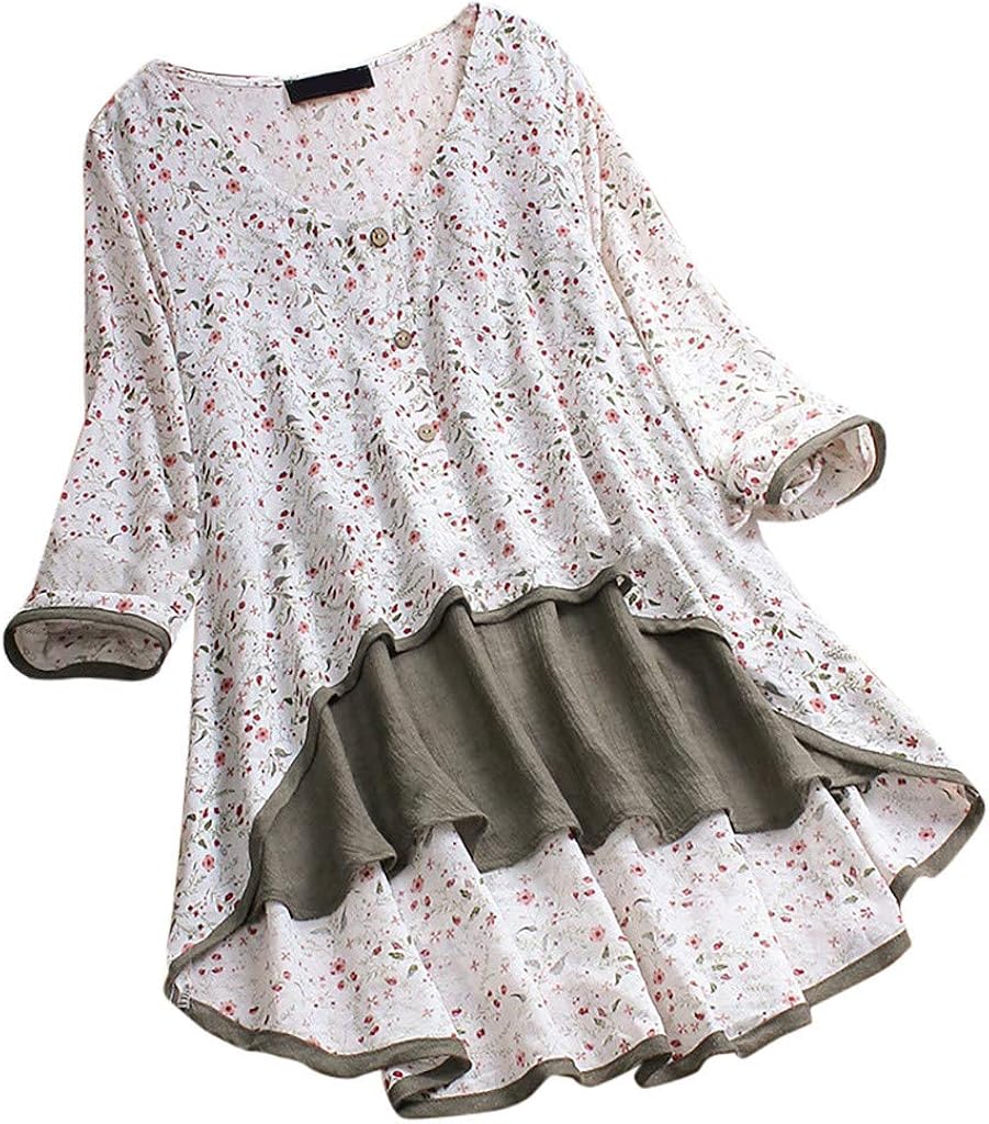 Longshirt Damen Leinenbluse Kanpola Blumen Druck Midikleid Grosse Grossen Locker Freizeitkleider Oversize T Shirts Tunika Kleid Kurzarm Pullover Knielange Kleider Etuikleid M 5xl