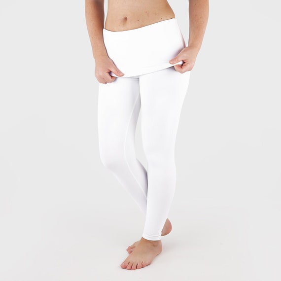 White Yoga Pants Fold Over Yoga Pants White Leggings Etsy