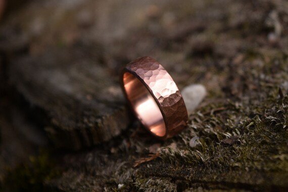 Hammered Ring Rosegold Copper Band Wedding Ring Groom Etsy