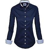 Heventon Hemdbluse Bluse Damen Langarm In Navy Grosse 34 Bis 50 Elegant Und Hochwertig Amazon De Bekleidung