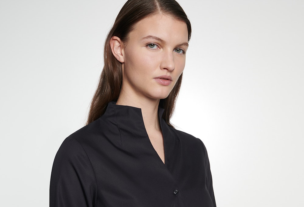 Extraglatt Bluse Kelchkragen Schwarz Walbusch