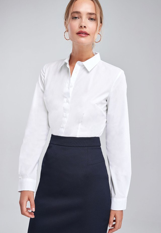 Extraglatt Bluse Kelchkragen Weiss Walbusch