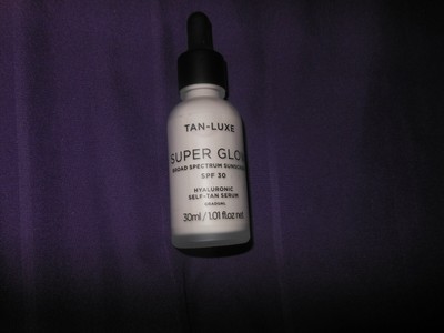 What it is A oneofakind hyaluronic, superfood selftan serum formulated for daily use—soft, smooth, and lightly sunned skin in a bottle Highlighted Ingredients Hyaluronic Acid Delivers hydration to skin Cocoa Seed Extract Works as a shield to protect the skin from daily environmental aggressors and pollutants. TanLuxe Super Glow Hyaluronic SelfTan Serum features a rich, velvety texture that melts into the skin for quick absorption Helping to leave skin bright, hydrated and refreshed, it works well as a primer before makeup and is veganfriendly and crueltyfree Give the skin a sunkissed look whatever the weather with TanLuxe Super Glow Hyaluronic SelfTan Serum, a multipurpose selftan and antiageing serum. TanLuxe Super Glow SPF 30 Hyaluronic SelfTan Serum What It Is An infusion of ingredients in this multipurpose, selftanning serum delivering radiance and antiaging benefits with the added benefit of sun protection with broad spectrum UVA/UVB SPF 30 Its Hyaluronic Complex delivers a powerful burst of hydration upon application.