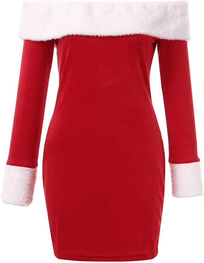 Ywlink Damen Weihnachtsfrauen Schulterfrei Langarm Minikleider Weihnachtsmann Samt Figurbetontes Warm Bequem Kleid Festlich Cocktailkleid Abendkleid Kleid Amazon De Bekleidung