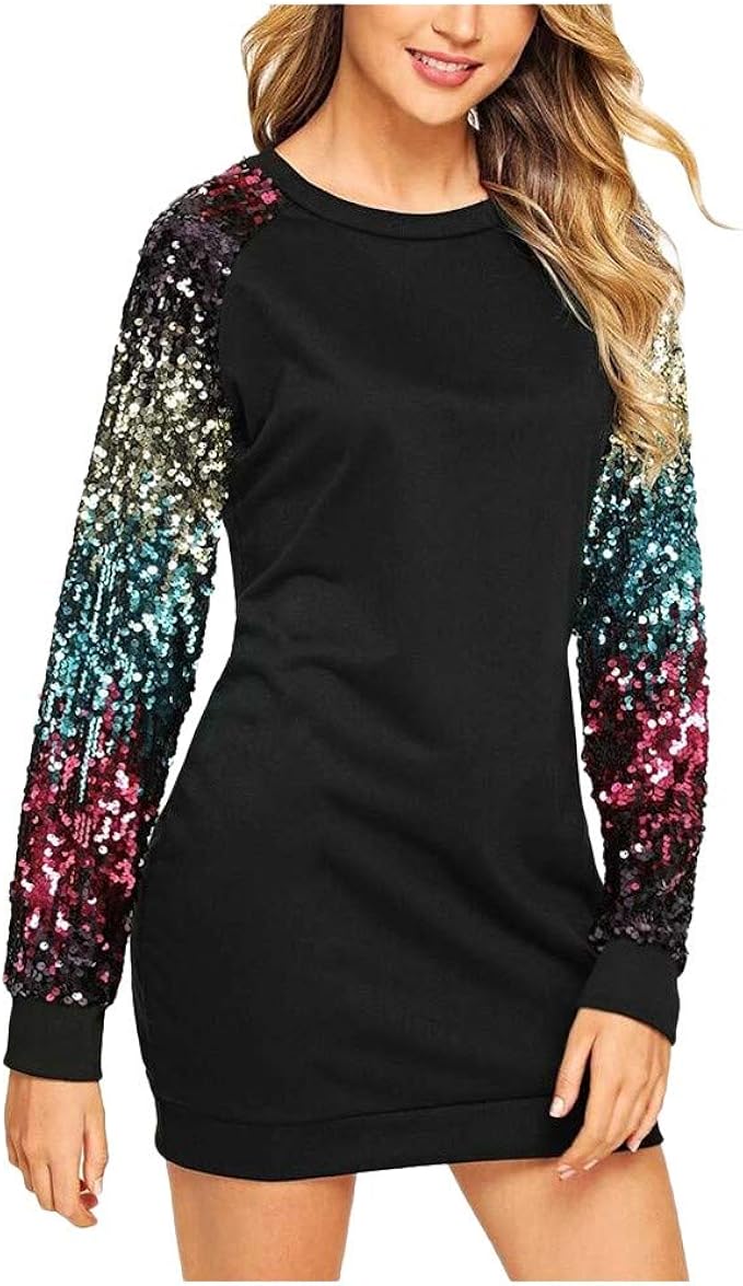 Rosennie Damen Kleider Paillettenkleid Abendkleid Festlich Cocktailkleid Party Langarm Freizeit Lose Kleid Mode Druck Knielang Kleid Minikleid Frauen Bodycon Kleid Etuikleid Amazon De Bekleidung