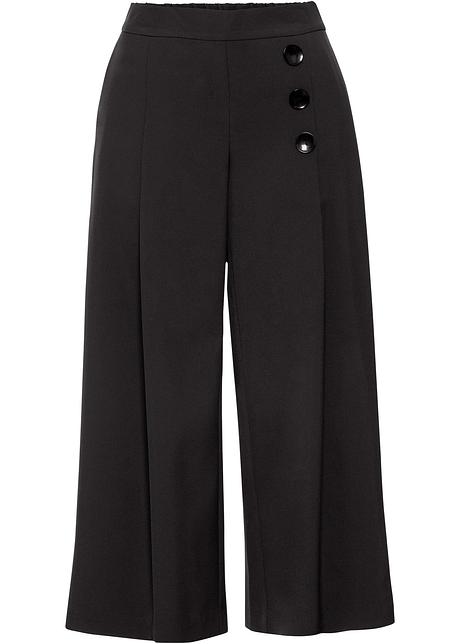 Elegante 7 8 Hose Mit Weitem Bein Vorne Mit 3 Knopfen Verziert Schwarz