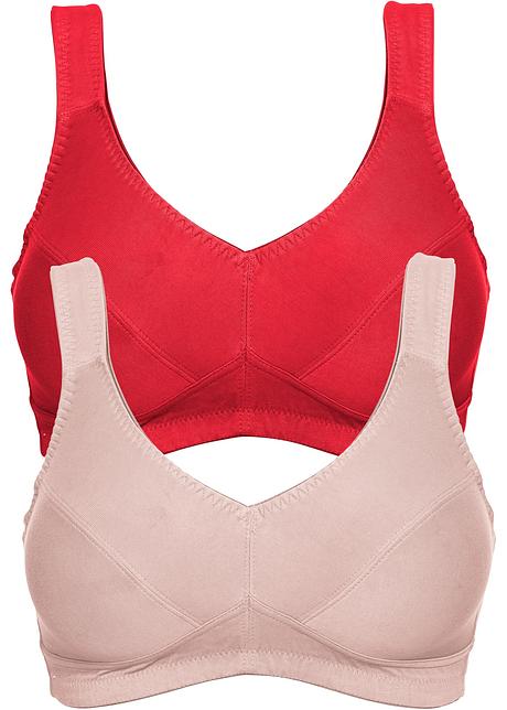 Bequemer BH mit breiten Trägern aus Biobaumwolle Dieser bequeme BH ohne Bügel im Doppelpack hält auch bei großer Oberweite, was er verspricht!. Eine schöne Form verleiht der BH ohne Bügel Ihrer Brust dennoch, und zwar durch den ausgewählten Schnitt und die Materialien Auch für einen ausreichenden Halt ist gesorgt Bügellose BHs bieten eine gute Unterstützung Dies gewährleistet in erster Linie ein stabiles Unterbrustband, oft kombiniert mit breiten Entlastungsträgern. Ohne Bügel Der Verschluss sitzt hinten Das blickdichte Material lässt die Haut nicht durchscheinen.