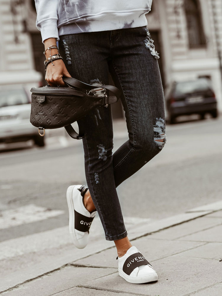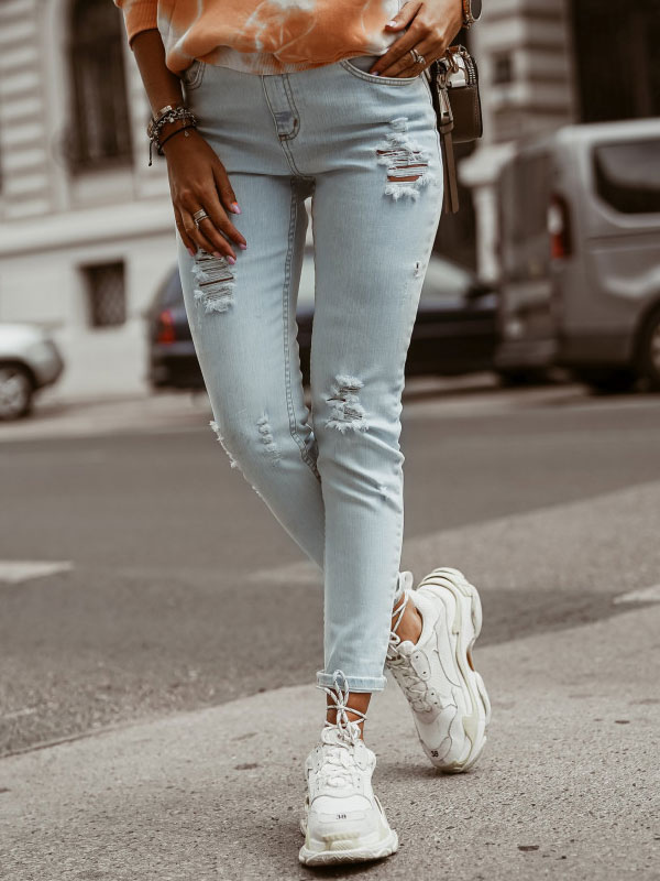 Denim Blue Conscious 5 Pocket Slim Fit Jeans In Washed Stretch Denim With Heavily Distressed Details Tapered Legs With Dar Skinny Jeans Denim Women Fashion