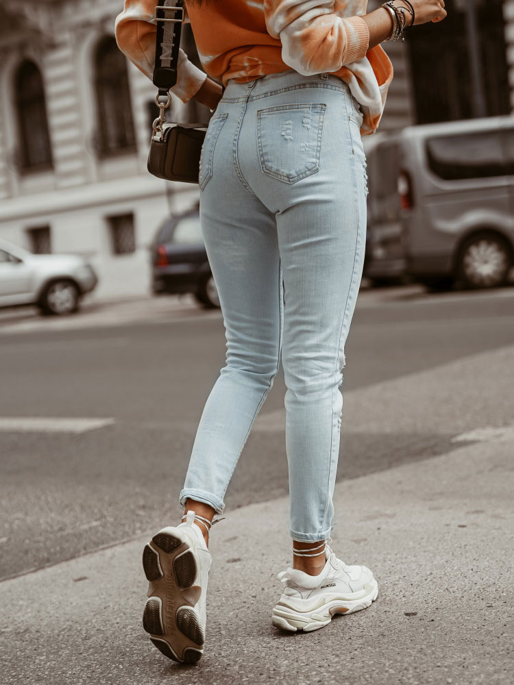 Slim Mom Jeans Light Blue Trashed Ladies H M
